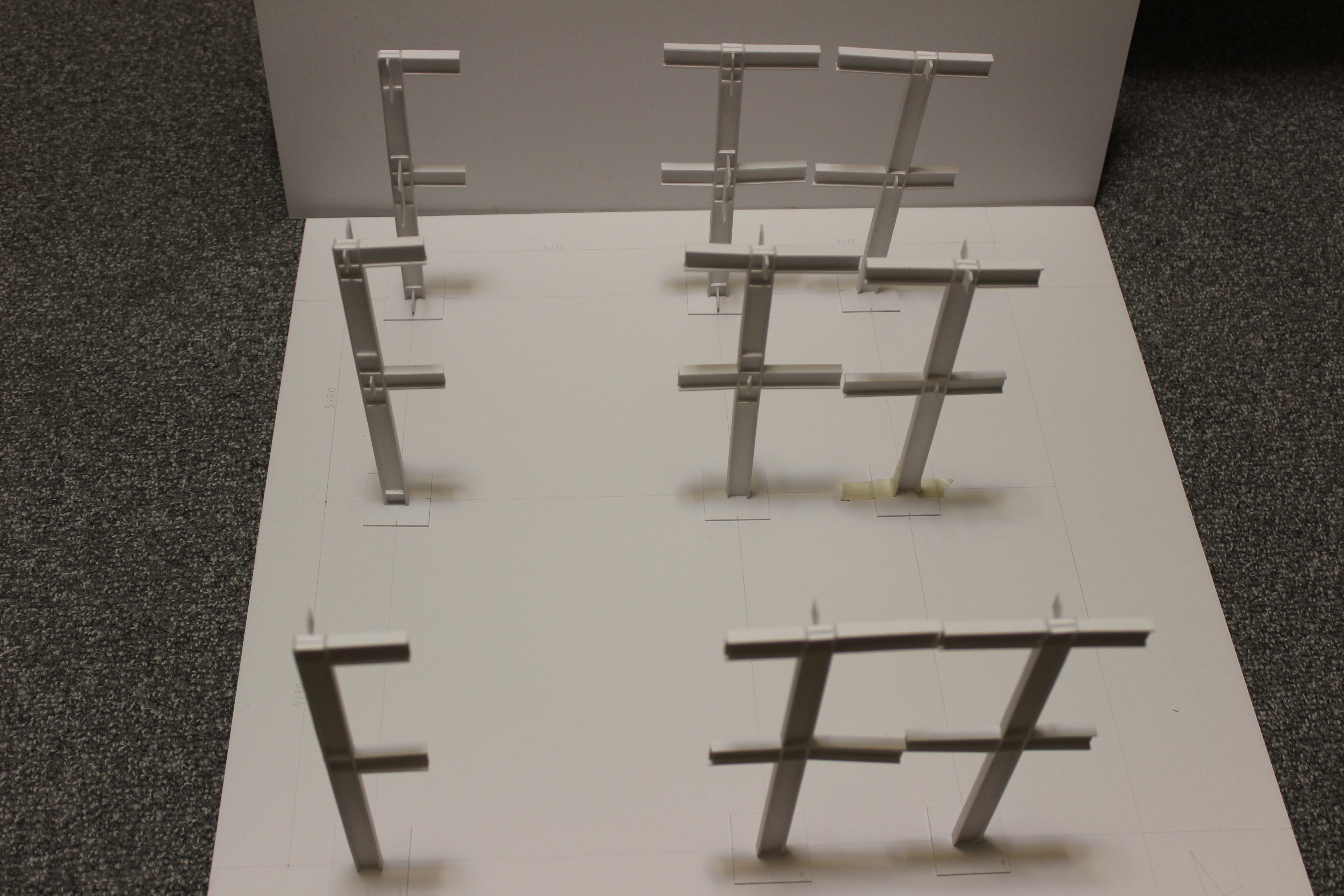 さらに、建築計画上、ブレースを配置できない構面があります。 建築計画と整合した耐震部材の配置
